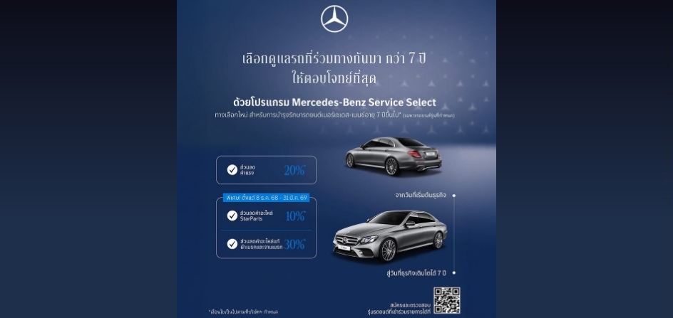 เมื่อทำการนัดหมายล่วงหน้าและนำรถยนต์เมอร์เซเดส-เบนซ์เข้ารับบริการในวันอาทิตย์ รับคะแนนสะสม Star Member Points x2