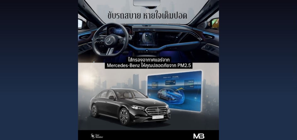 ฝุ่น PM2.5 หนักแค่ไหนก็ไม่ต้องหวั่น เพราะ Mercedes-Benz พร้อมปกป้องทุกคนในรถด้วยไส้กรองอากาศแอร์คุณภาพสูง ที่ช่วยดักจับฝุ่นและมลพิษ ขับเพลิน หายใจโล่งในทุกเส้นทาง