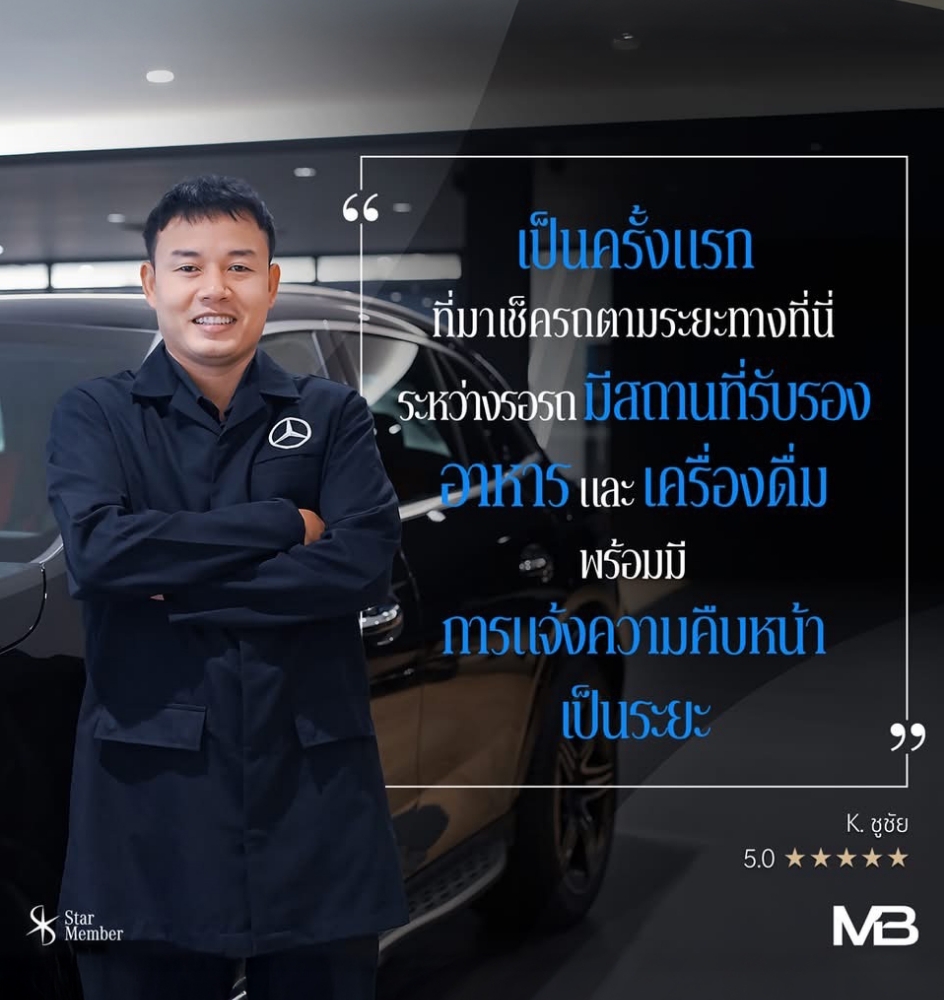 "เป็นครั้งแรกที่มาเช็กรถตามระยะทางที่นี่ แม้ว่าจะซื้อ Mercedes-Benz ที่นี่มา 3 คันแล้ว เนื่องจากต้องรอรับรถกลับ ประทับใจในช่วงที่รอรับรถ มีสถานที่รับรอง อาหารเครื่องดื่มและของว่าง และมีการแจ้งให้ทราบเป็นระยะครับ" K. ชูชัย