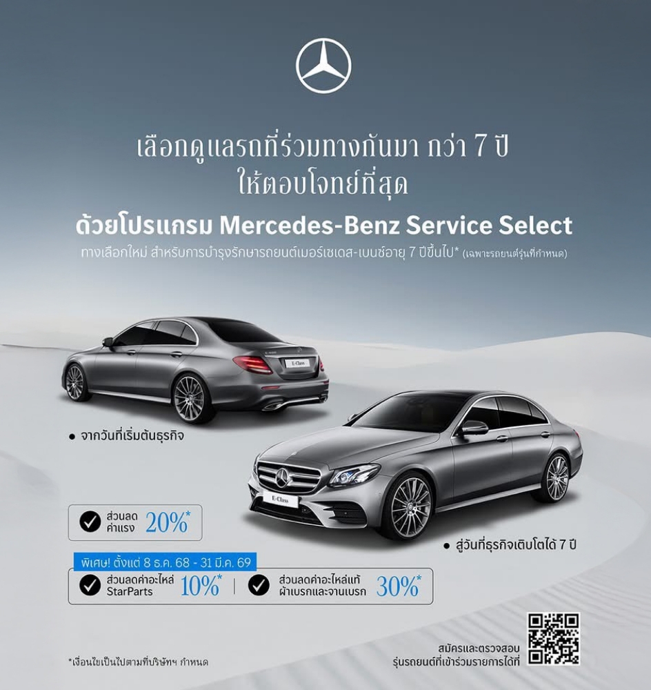 โปรแกรม Service Select ทางเลือกการดูแลที่ช่วยให้คุณดูแลรถได้อย่างคุ้มค่า ภายใต้มาตรฐานการบริการของ Mercedes-Benz
